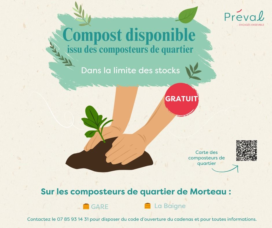 La Ville de Morteau met à disposition du compost mûr, idéal pour le jardin ou le potager. Il est accessible gratuitement sur les sites de compostage de la gare et de la Baigne. Pour le récupérer, il suffit d’appeler le 07 85 93 14 31 afin dâ€...