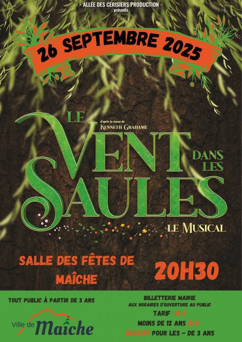 Un petit air de Broadway va souffler sur la ville ce soir avec ce spectacle Le Vent dans les Saules. Grande fresque naturaliste, cette histoire animalière est faite pour les grands et les petits... Une histoire universelle portée par des comédiens...